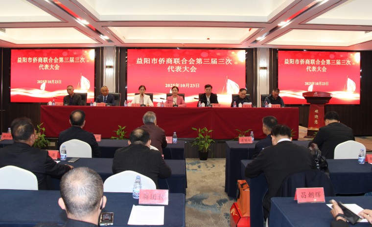 本網訊 10月23日,益陽市僑商聯合會第三屆三次會員代表大會在紫金山大酒店隆重舉行。大會以“凝聚僑心、匯聚僑力、共商發展、同興益陽”為主題,省、市相關領導、海內外僑領及全體會員代表共同出席。